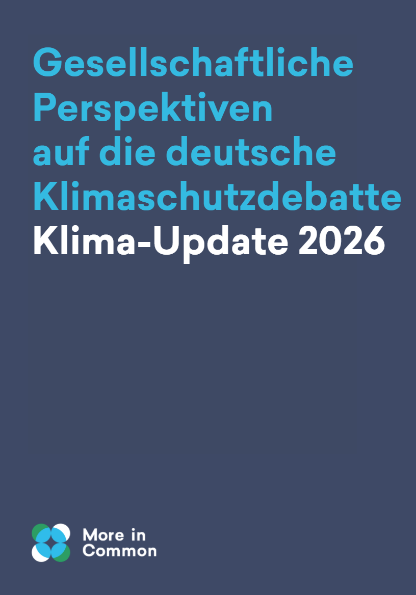 Mit dem Klima-Update 2026 analysieren wir von More in Common, wie sich Einstellungen, Erwartungen und zentrale Spannungsfelder in der Klimaschutzdebatte in Deutschland entwickelt haben. Die Untersuchung knüpft an unsere langjährige Forschung an und bietet eine aktuelle gesellschaftliche Einordnung für alle, die politisch, zivilgesellschaftlich oder kommunikativ zu Klimaschutzfragen arbeiten.